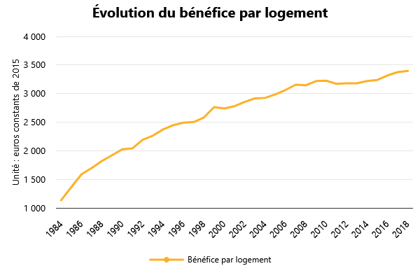 https://www.inegalites.fr/Comment-la-hausse-des-loyers-enrichit-les-proprietaires-2826 - Reproduction interditeLa hausse des loyers pèse lourdement sur le budget des ménages, en particulier les plus jeunes d’entre eux. Elle réduit leur pouvoir d’achat alors que les salaires n’augmentent guère. Ce phénomène est connu. L’argent des loyers n’est pas perdu pour tout le monde : c’est un revenu pour les propriétaires bailleurs [1]. Et celui-ci a nettement progressé au cours des dernières décennies. Entre 1984 et 2018, le montant des loyers perçus a été multiplié par 2,2 après inflation : rares sont ceux dont les revenus ont autant progressé. Les propriétaires bailleurs recevaient 23 milliards au milieu des années 1980, ils en tirent désormais plus de 50 milliards, selon le ministère du Logement. Cela signifie que les locataires du privé ont dépensé 27 milliards de plus pour se loger. Bien sûr, le nombre de logements et de propriétaires a augmenté. Exprimé par logement, le bénéfice est encore plus élevé. Entre 1984 et 2018, le résultat brut courant par logement (le profit une fois les charges [2] déduites) des bailleurs privés a été multiplié par trois, une fois l’inflation déduite. Une croissance quasiment ininterrompue sauf entre 2008 et 2015. Un logement rapportait en moyenne 1 100 euros par an en 1984 (exprimés en monnaie de 2015), il produit aujourd’hui un gain de 3 500 euros.