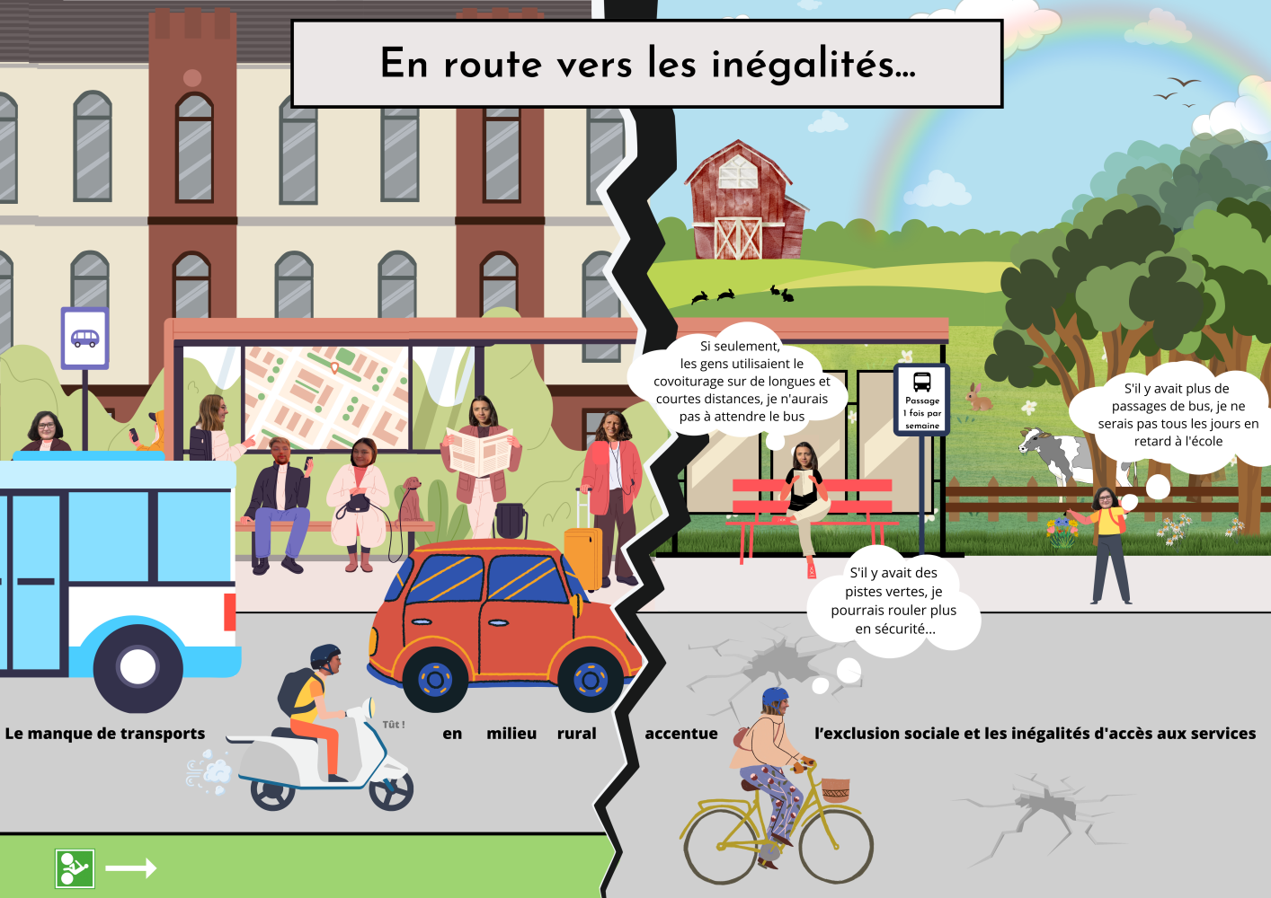 « En route vers les inégalités" » - réalisée par Anthony ALVES-DINIS, Lucie DUBIN, Sherza GIMON, Alexia TALEUX et Lucie TALEUX (Unis-Cité, Mobili’Terre Vendée, Saint-Sigismond).