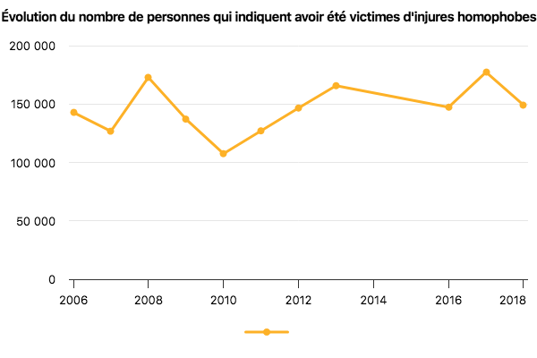 Il est particulièrement difficile de mesurer l’ampleur réelle du phénomène. Selon les enquêtes menées auprès de la population, seules 20 % des victimes de menaces ou de violences anti-LGBT déclarent avoir porté plainte, et même seulement 5 % pour les injures. Une grande partie des actes ne sont pas déclarés car ils sont très difficiles à prouver, notamment ceux qui se jouent entre proches, dans l’intimité de la famille par exemple. D’après les enquêtes auprès de la population, environ 150 000 personnes disent être victimes d’injures homophobes chaque année (donnée 2018, Insee). En termes de valeurs, la société française dans son ensemble paraît être plus tolérante au fil du temps. Pourtant, au vu des dernières données, il reste un long chemin à parcourir pour que les différentes orientations sexuelles soient banalisées.