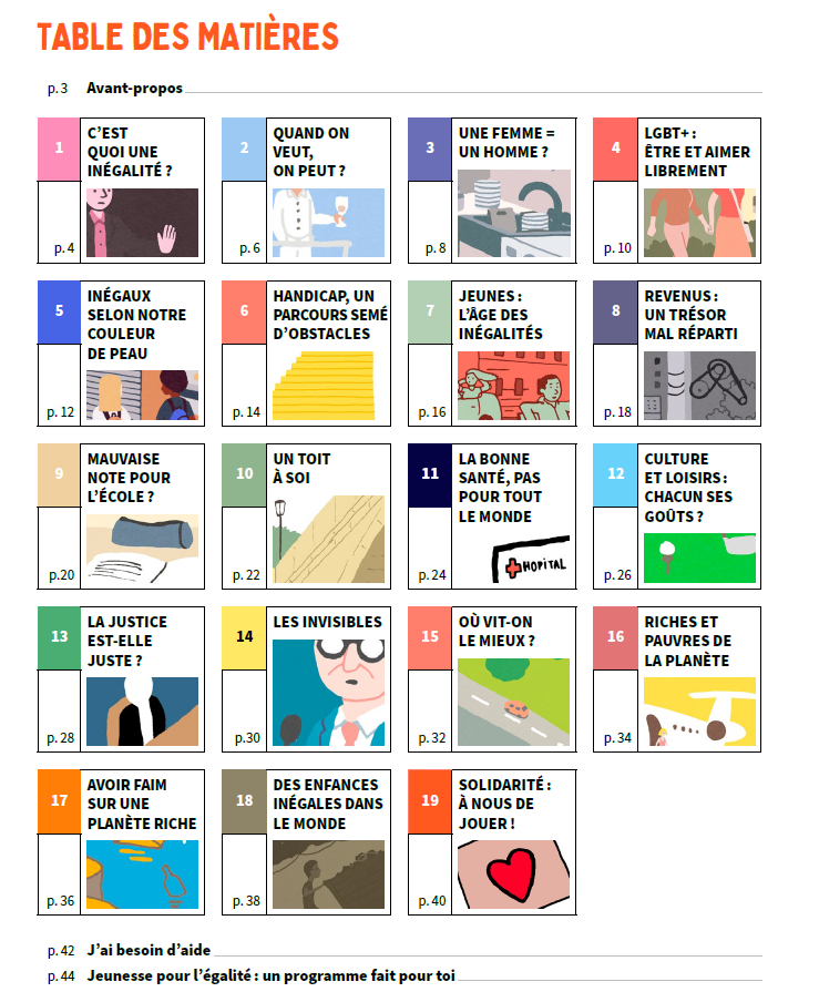 Prix : 10,00 € AJOUTER AU PANIER Feuilleter quelques pages Commander la version PDF et économiser les frais d'envoi« Pourquoi ma mère qui est infirmière gagne moins que mon père qui est banquier ? ». « Pourquoi certains sont riches quand d’autres vivent à la rue ? ». « C’est quoi les difficultés des personnes handicapées ? ». « Ça veut dire quoi LGBTphobies ? ». « Pourquoi certains gens refusent de louer un logement à quelqu’un de noir ? ».